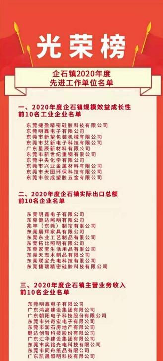 3月3日上午,企石鎮召開2020年度工作總結大會,發布了《企石鎮2020年度先進工作單位名單》,包括《2020 年度企石鎮規模效益成長性前10名工業企業名單》《2020 年度企石鎮實際出口總額前10名企業名單》《2020 年度企石鎮主營業務收入前10名企業名單》等10份名單。會議對2020年度企石鎮主營業務收入前10名企業進行了現場表彰。新望公司有幸入列:企石鎮2020年度規模效益成長性前10名。